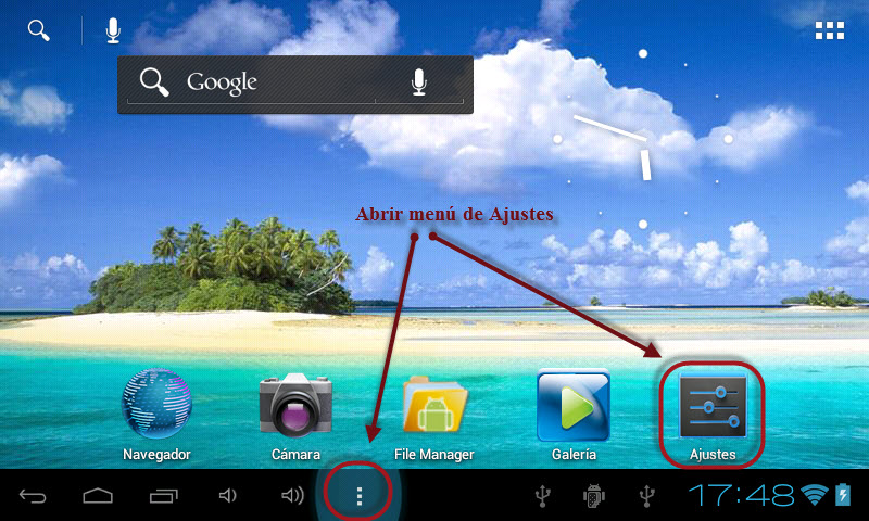 1) Debemos ir al menú de “Ajustes del sistema”. Debe pulsar en el icono de los tres puntos